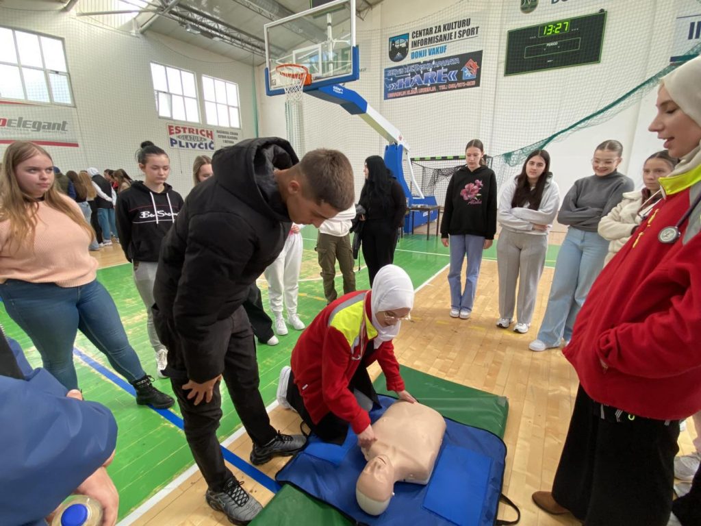 Kroz praktiฤne primjere doktora, medicinskih tehniฤara i volontera Crvenog kriลพa Donji Vakuf mladi su imali priliku da nauฤe kako pravilno reagovati u hitnim situacijama, prepoznati srฤani zastoj i primijeniti osnovne postupke reanimacije.