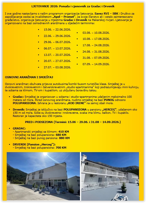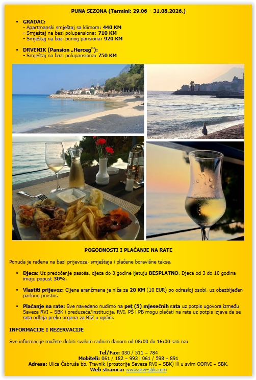 IstaknutoDonji Vakuf – SRVI SBK LJETOVANJE 2026: Ponuda i cjenovnik za Gradac i Drvenik 13 Aprila, 2026 Izvor: SRVI SBK X Exit full screen gallery ⇗ Open full size image → Next image 0 of 0 ← Previous image Like this:Like Loading...
