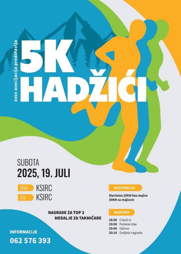 U organizaciji JU Kulturno-sportski i rekreacioni centar Hadžci (KSIRC) i Udruženja ASUS u Hadžicima je 19.07.2025.godine održano prvo izdanje trke Hadžici 5K. Nastupilo je ukupno 235 učesnika i među njma naš Mustafa Beganović.
