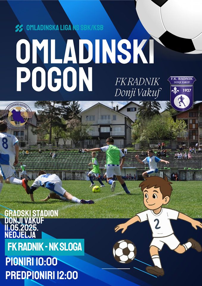 Poštovani pratioci i navijači FK Radnika, pozivamo vas u subotu na kadetsku utakmicu u 10:00 sati, a u nedjelju na utakmicu pionira i predpionira koje će se igrati u 10:00 i 12:00 na Gradskom stadionu u Donjem Vakufu. Kadeti će igrati protiv vršnjaka iz Jajca, a pioniri i predpioniri protiv NK Sloge iz Gornjeg Vakufa.