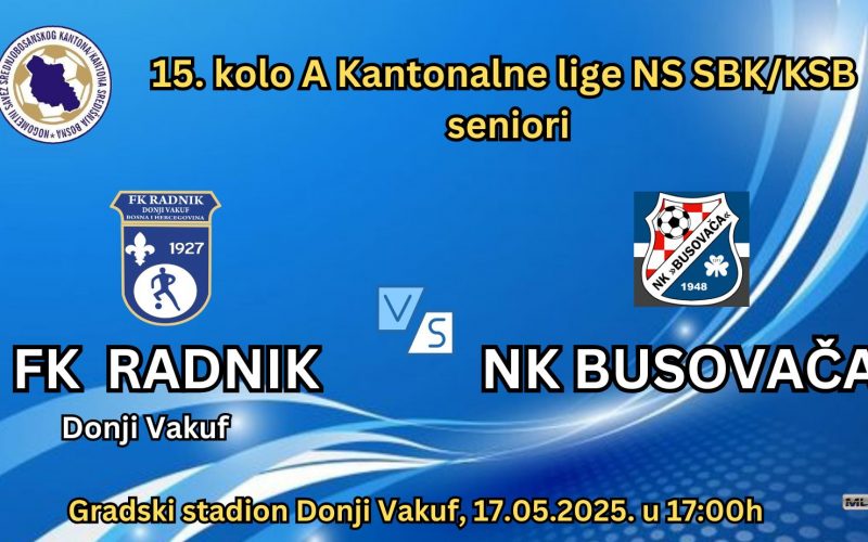 17.05.2025. na Gradskom stadionu u Donjem Vakufu sa početkom u 17:00h naši seniori dočekuju ekipu NK Busovača. Donjovakufljani su lideri na tabeli, što potvrđuju iz kola u kolo svojim dobrim igrama.
