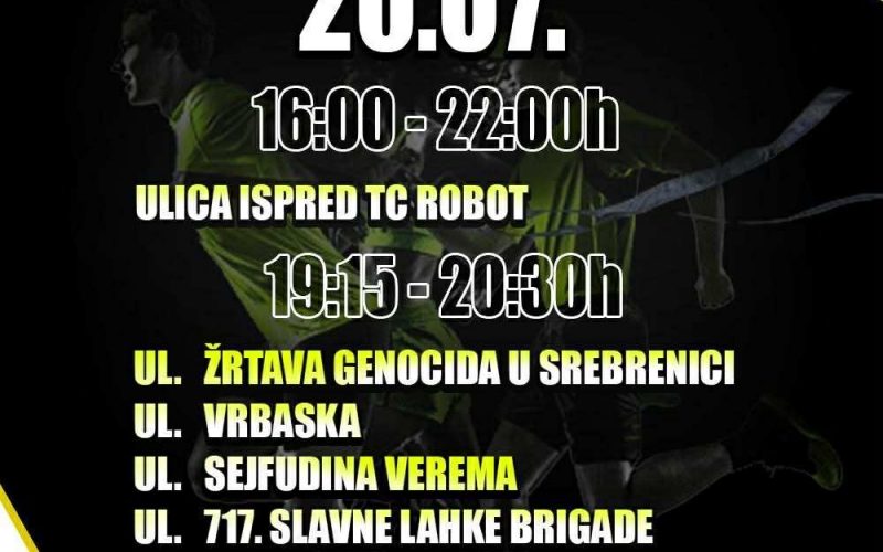 Zbog održavanja prve noćne utrke “Donjovakufska petica”, večeras, u nedjelju, 20. jula 2025. godine, doći će do privremene obustave saobraćaja u užem gradskom jezgru Donjeg Vakufa.